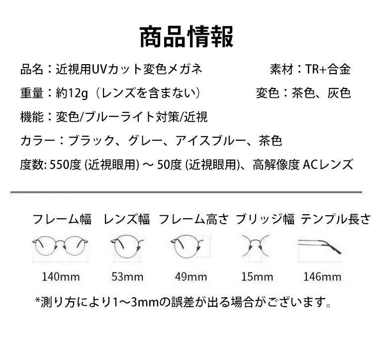近視用UVカット変色メガネ
